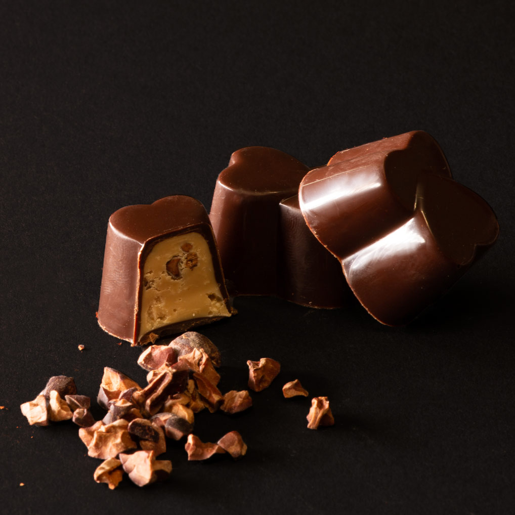 Pralinele se pastreaza la loc uscat (umiditate maxim 60%) si temperatura cuprinsa intre 15ᵒC si 17ᵒC. A se tine departe de lumina si mirosuri puternice.