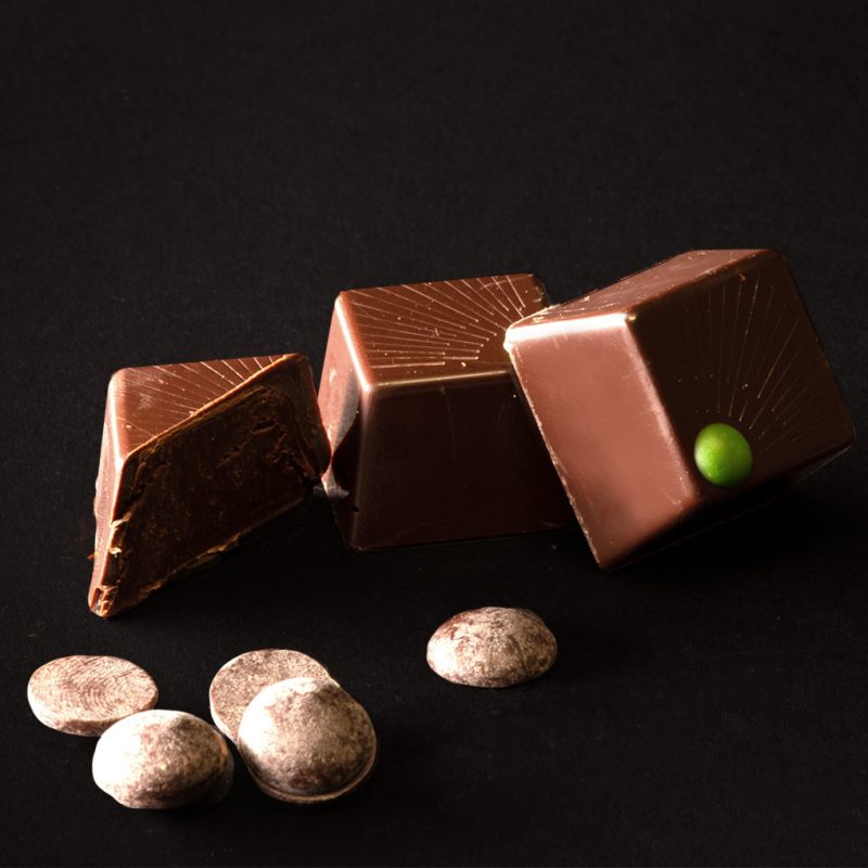 Pralinele se pastreaza la loc uscat (umiditate maxim 60%) si temperatura cuprinsa intre 15ᵒC si 17ᵒC. A se tine departe de lumina si mirosuri puternice.