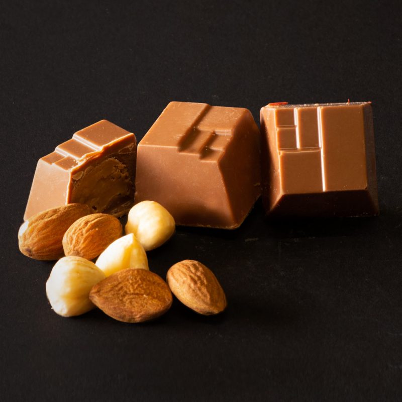 Pasta de alune si migdale ,invelite in ciocolata cu lapte